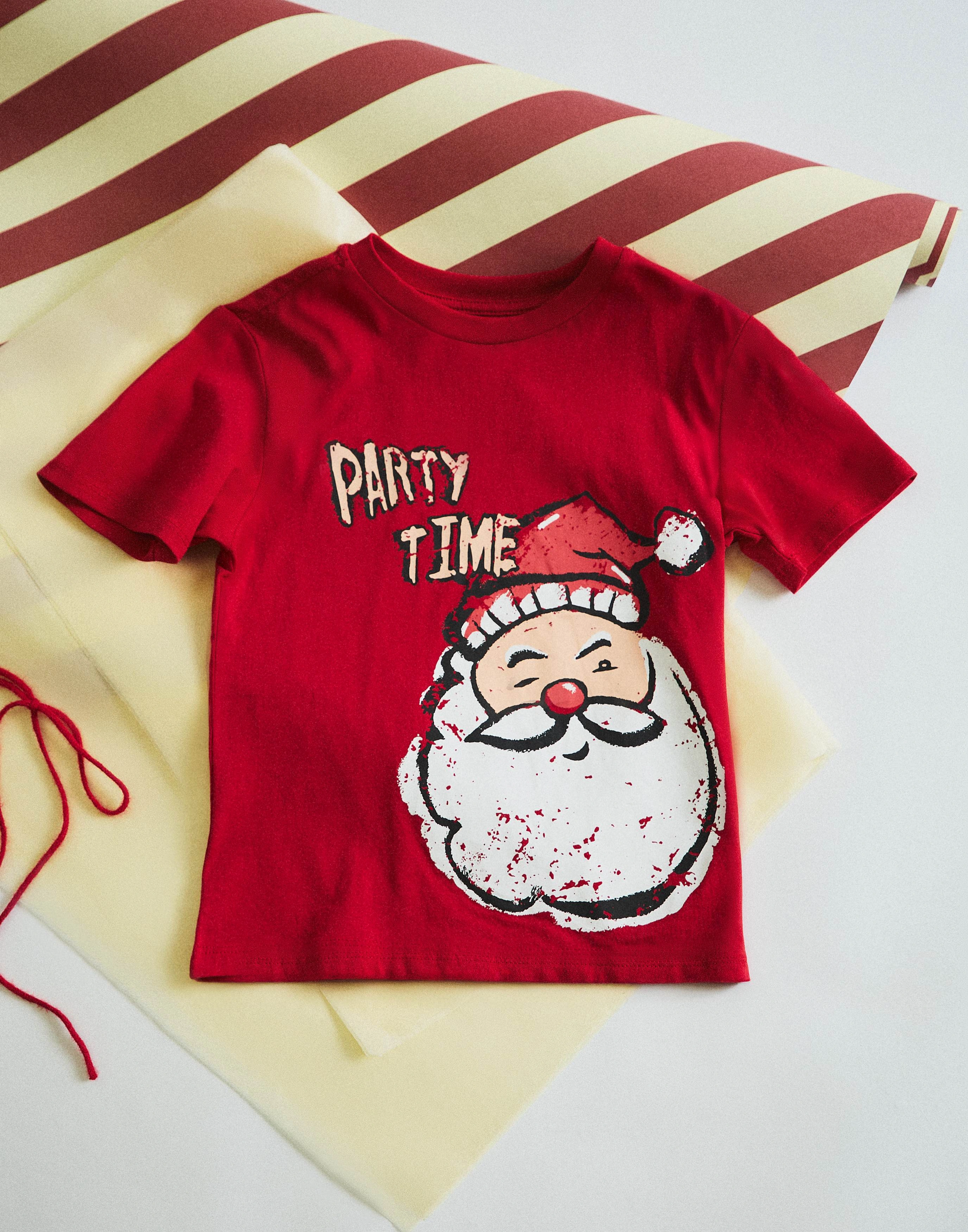 Красная футболка с новогодним принтом для мальчика Bkt017517-1