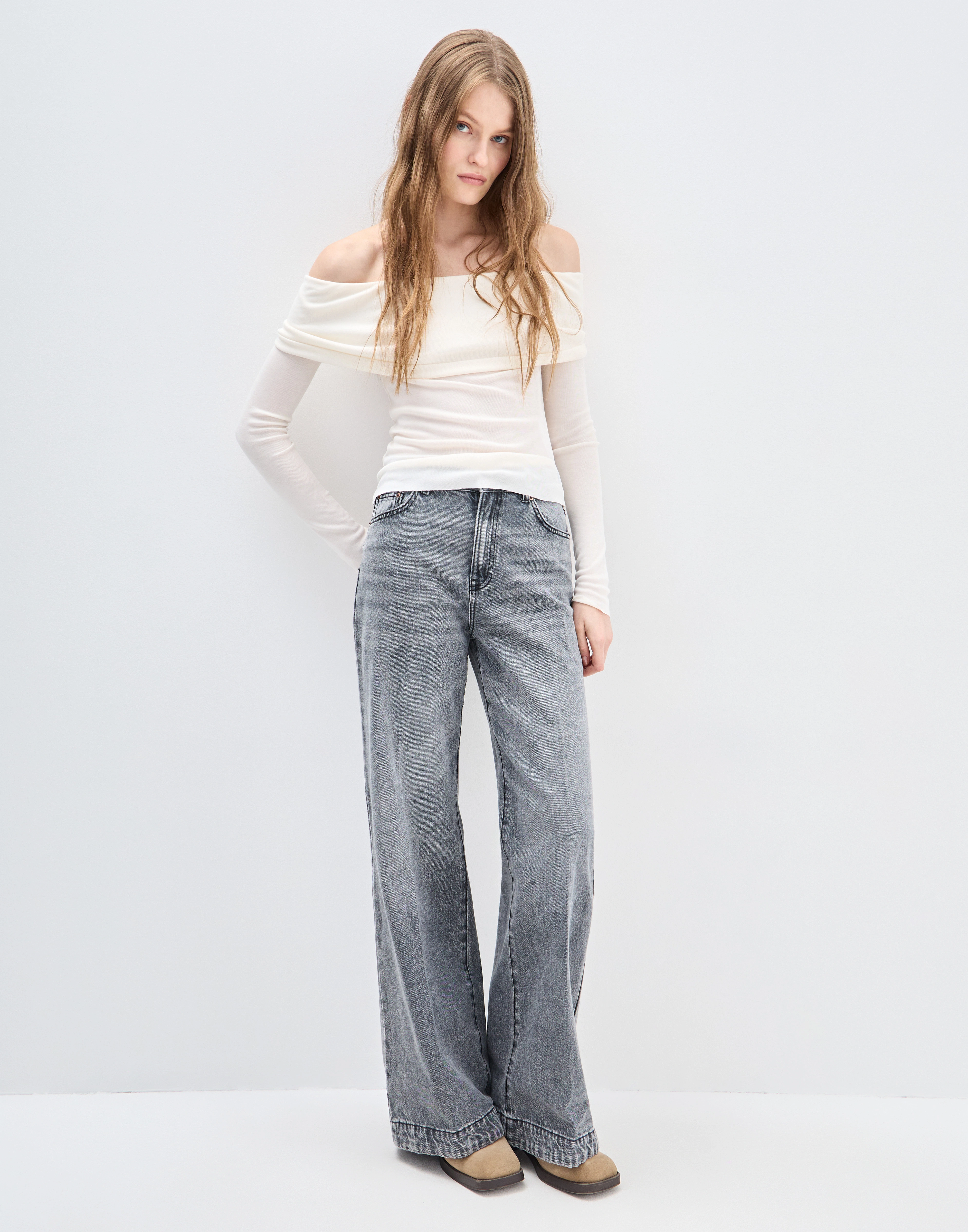 Серые джинсы Wide leg с варкой Gjn036507-1