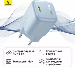 Сетевое зарядное устройство Baseus Picogo Gan Fast Charger 1C 45W Eu Galaxy Blue (P10176800313-00)