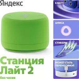 Умная колонка Яндекс Станция Лайт 2 с Алисой, без часов, 6 Вт, зеленая