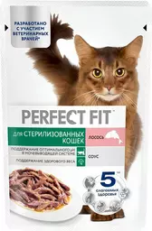 Корм Perfect Fit лосось в соусе для стерилизованных котов и кошек консервированный полнорационный, 75г