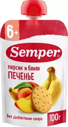 Пюре фруктовое Semper Персик и Банан с Печеньем с 6 месяцев, 100г