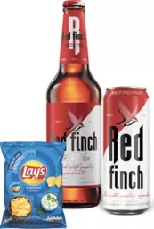 Вместе выгоднее: Пиво Red Finch, 0.45 л — 2 шт + Чипсы Lays Сметана и зелень, 70 г