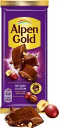 Шоколад Alpen Gold молочный с фундуком и изюмом, 80г