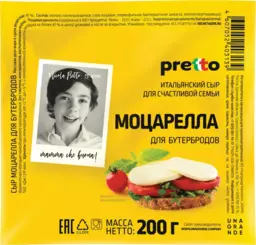 Сыр рассольный Моцарелла Pretto 45% Бзмж, 200 г