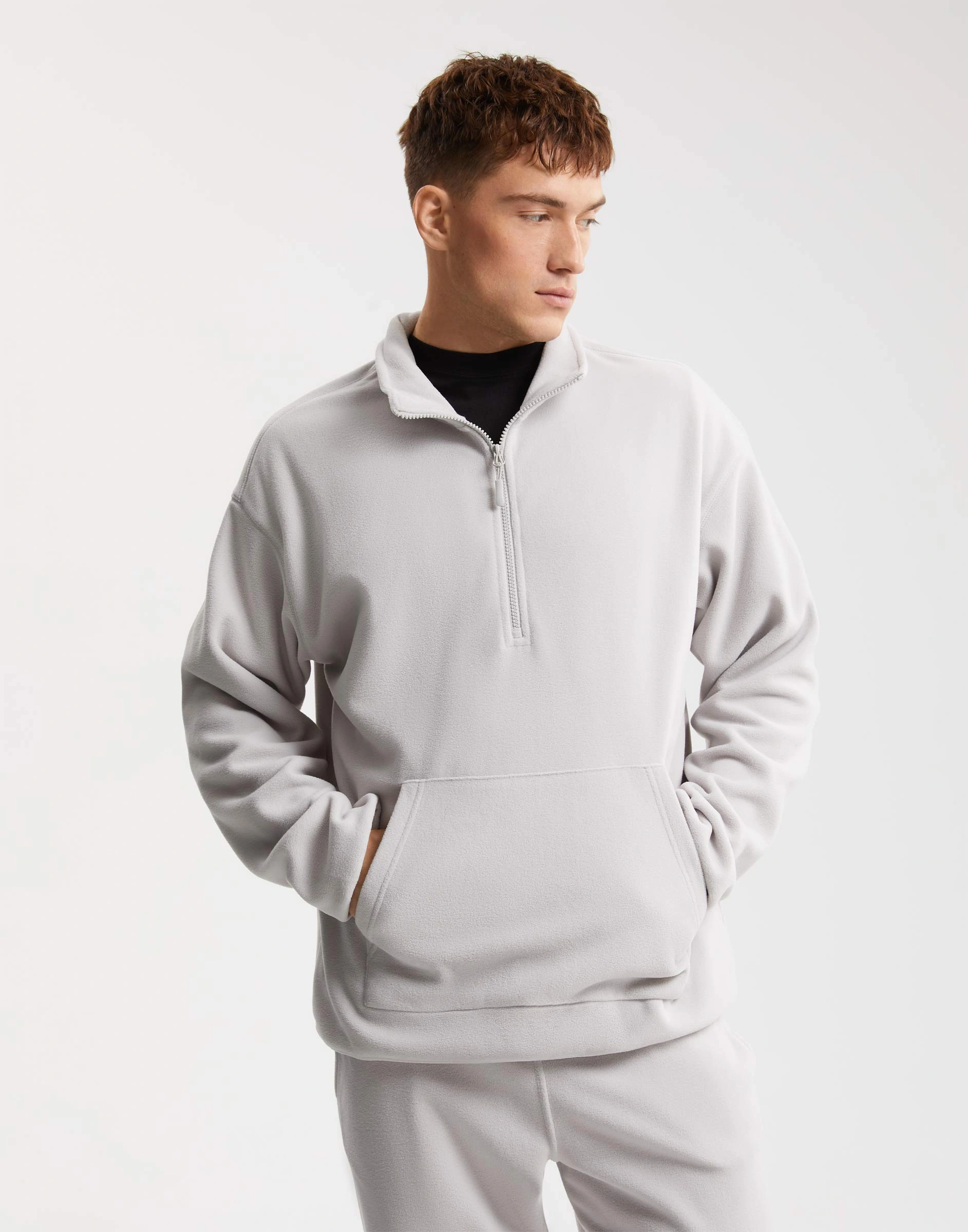 Светло-серый свитшот из полар-флиса с воротником-стойкой Bac014204-1