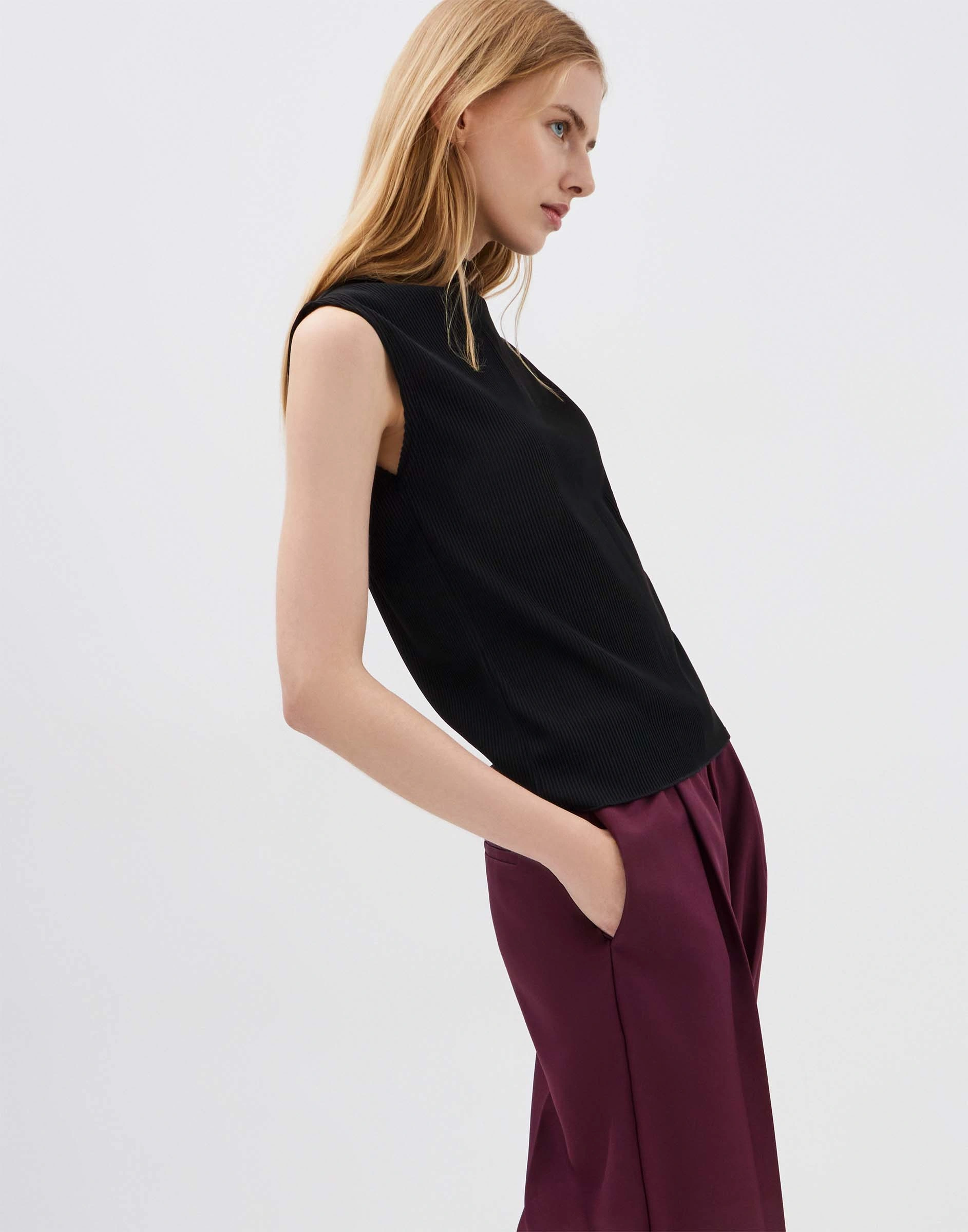 Чёрный топ с воротником-стойкой Gkt026005-1
