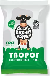 Творог Очень важная корова обезжиренный 180г(св/у)