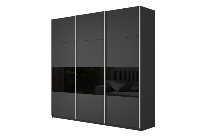 Шкаф-купе 3-дверный Magnus 240х230 см, серый диамант, чёрный глянец, профиль - серебро 9007829