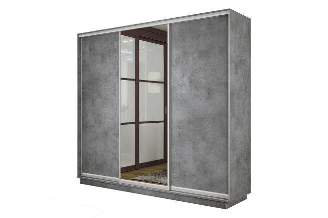 Шкаф-купе 3-дверный Slide-2 180х220х60 см, бетон/серебро, с одним зеркалом 10426599