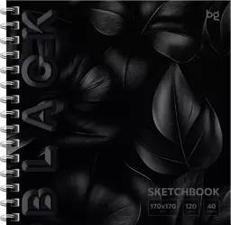 Скетчбук для эскизов 17*17 см 40 л. гребень Биджи Блэк Ливс 120г/м2 (Скв40гр_64602)