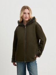 Женская дубленка Maison David (натуральная замша дубльфас), темно-зеленый