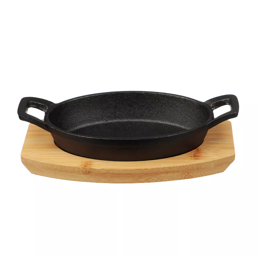 Satoshi Сковорода мини на подставке из бамбука чугун, овальная, 15х9.8см, индукция