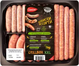 Ассорти из мясных колбасок Grill box Xxl охлажденные Грильмания Самсон Гву 1000г