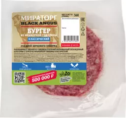 Бургер из мраморной говядины охлажденный Black Angus Мираторг Tf 360г