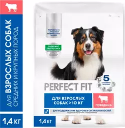 Сухой корм для взрослых собак больше 10 кг Perfect Fit с говядиной, 1.4 кг