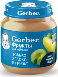 Пюре фруктовое Gerber Яблоко и груша для первого прикорма с 5 месяцев, 125 г