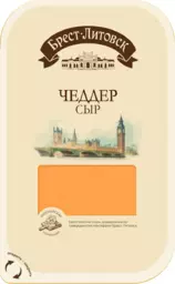 Сыр полутвердый Чеддер Брест-литовск нарезка 45% Бзмж Беларусь, 130 г