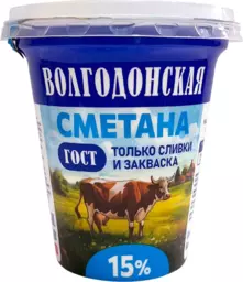 Сметана Волгодонская 15% Гост Бзмж, 300 г