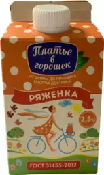 Напиток кисломолочный Ряженка Платье в горошек 2.5% Бзмж, 450 г