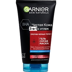 Garnier Гель + Скраб + Маска от черных точек, для жирной кожи, склонной к появлению несовершенств Чистая Кожа 3-в-1 с углем Skin Naturals