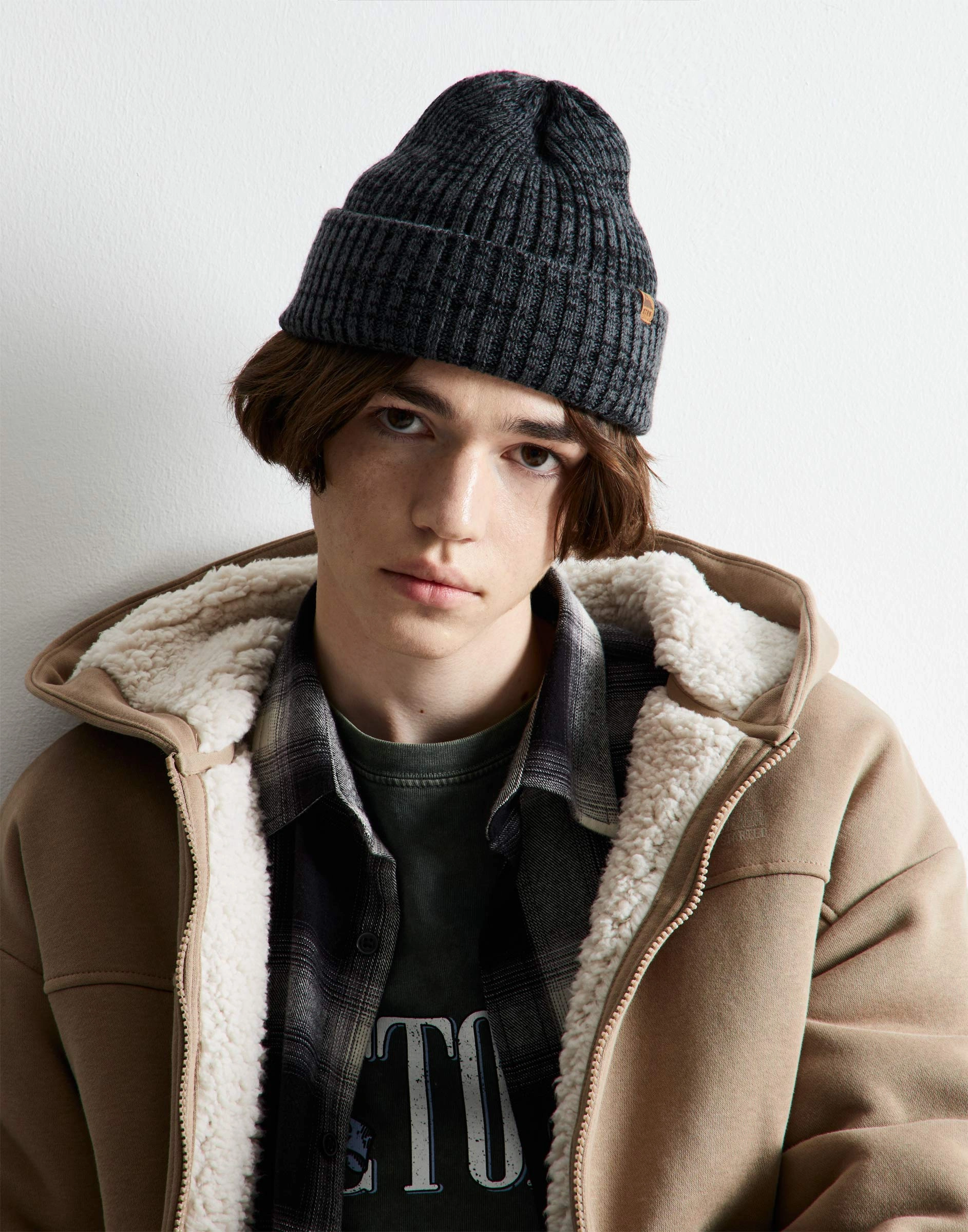 Тёмно-серая шапка-бини с жаккардовым патчем Bas006286-1
