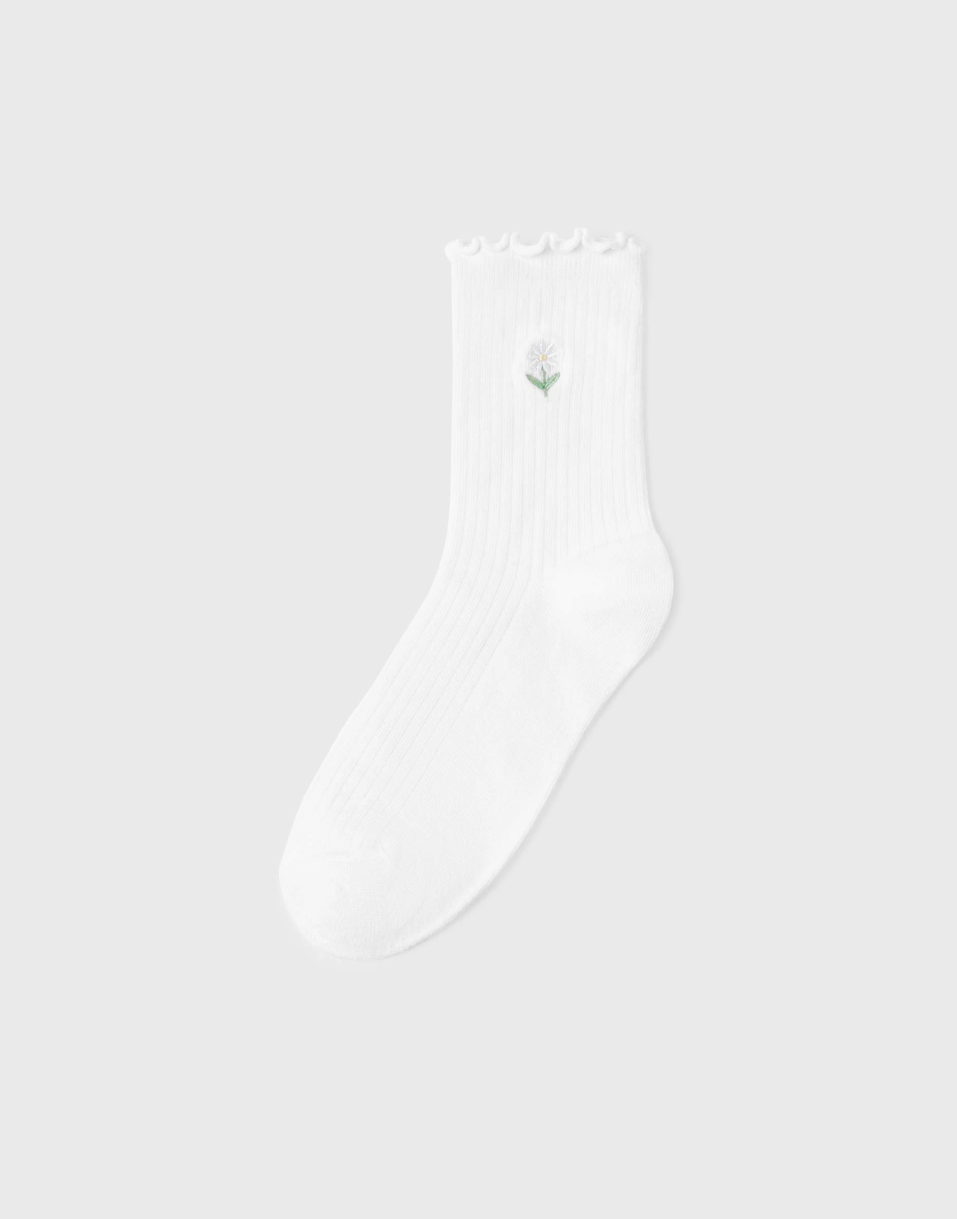 Белые носки в рубчик с рюшами и вышивкой Ghs010397-1