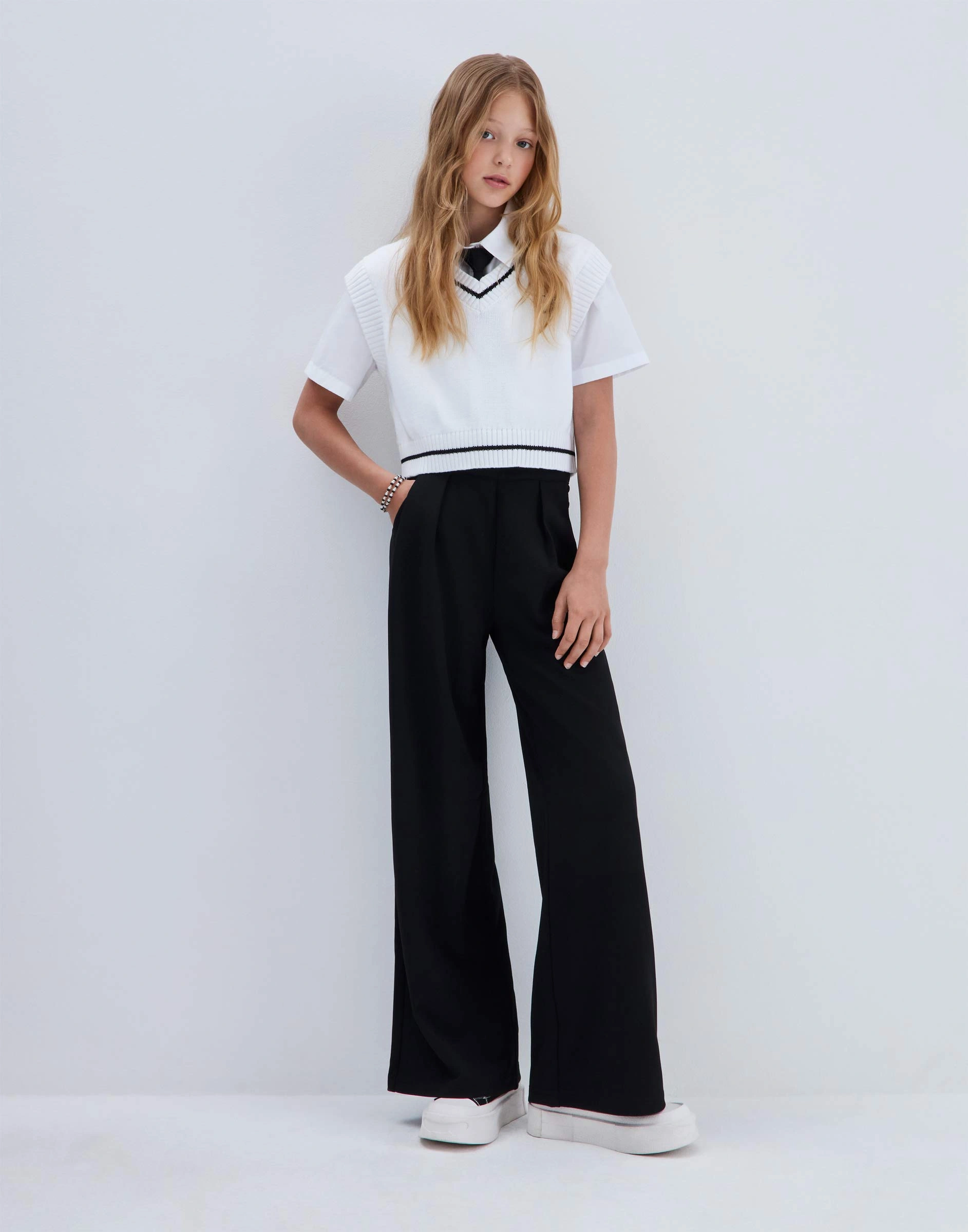 Чёрные школьные брюки Wide leg Gsu001338-2