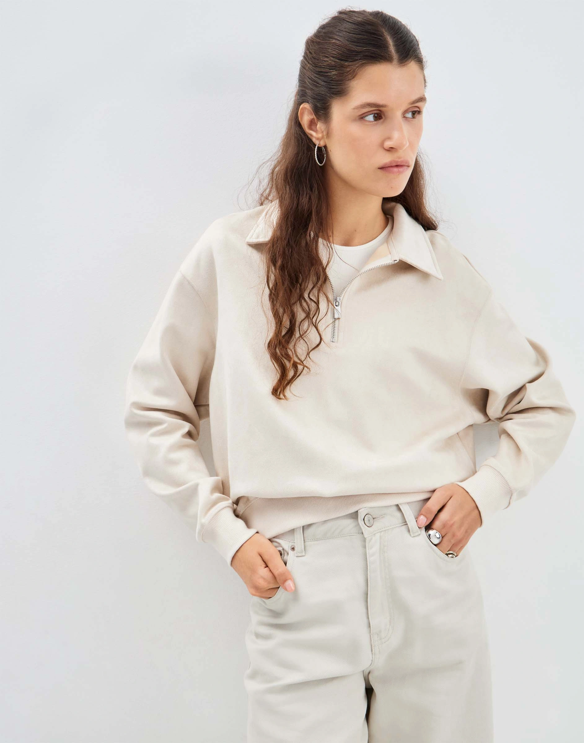 Молочный свитшот-поло oversize из замши Gac024425-2