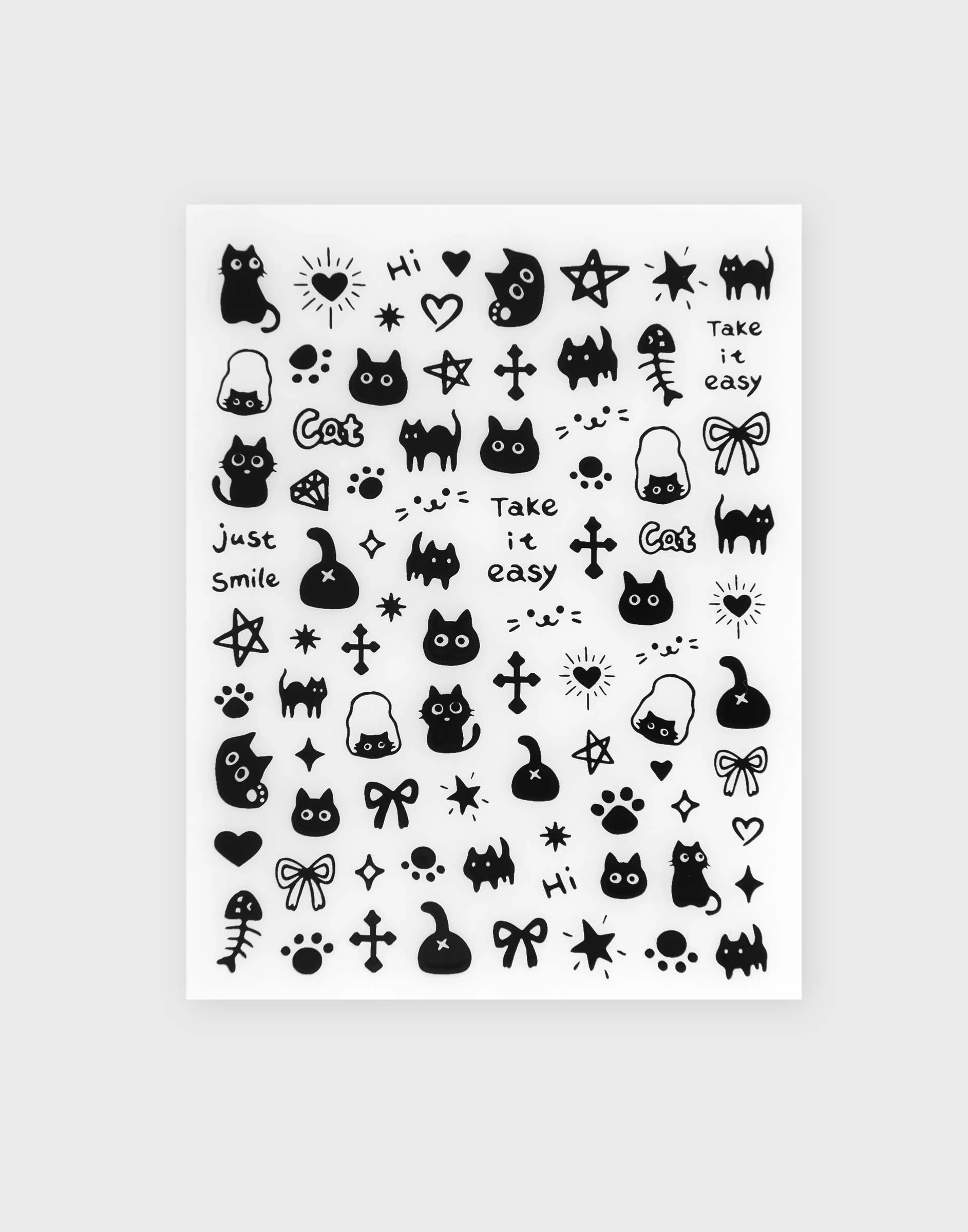 Чёрные стикеры для ногтей с котиками Gas017375-1