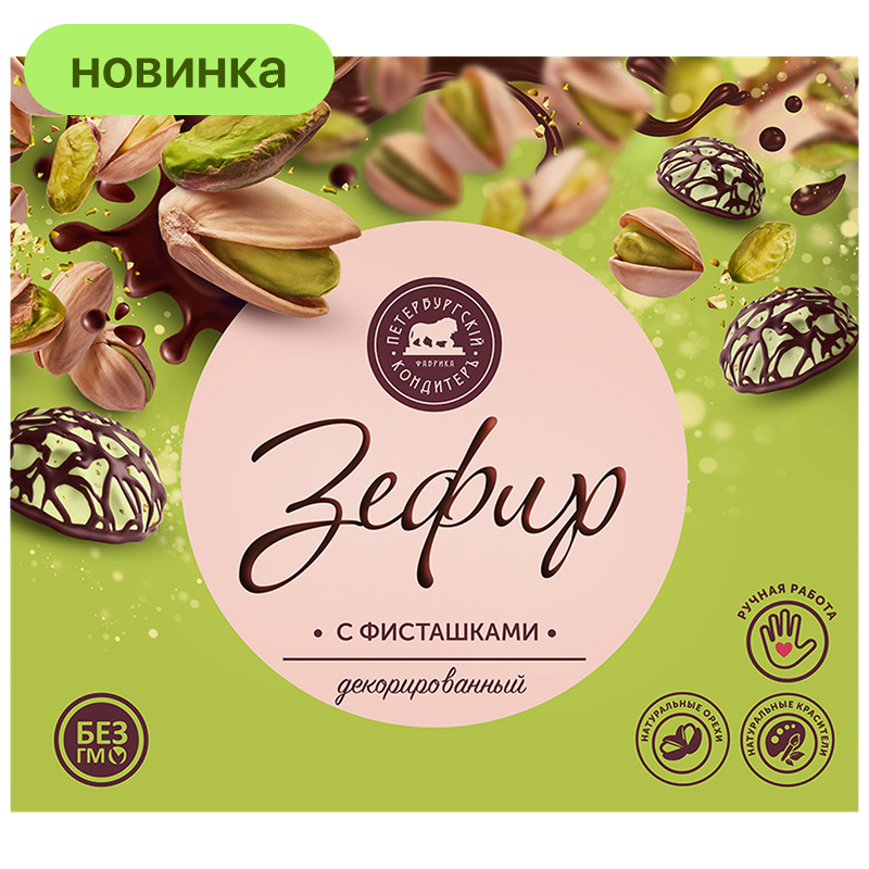 Зефир Петербургский Кондитеръ с дроблёной фисташкой, 205 г
