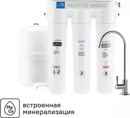 Система обратного осмоса Гейзер Престиж Смарт быстросъемный 3 ступени с минерализатором бак 12 л кран в комплекте