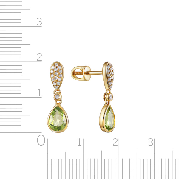 Пусеты с хризолитом, бриллиантами из желтого золота 450272