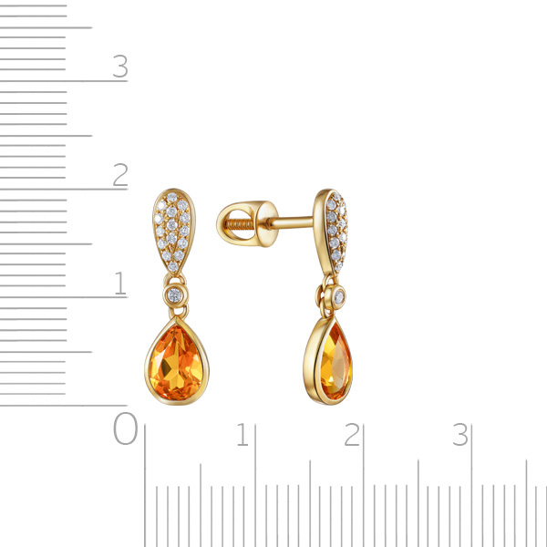 Пусеты из желтого золота с бриллиантами и цитринами 450275