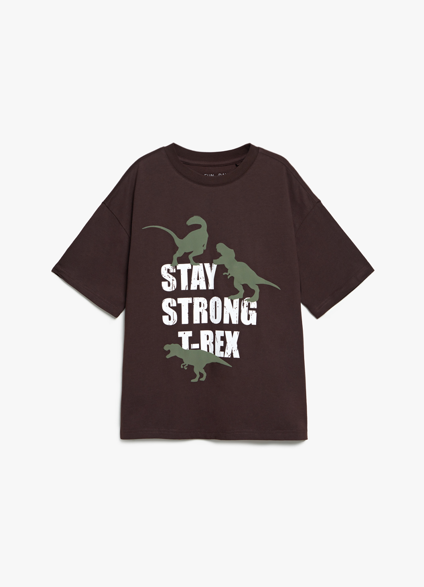 Футболка пижамная коричневая с принтом 34510700299