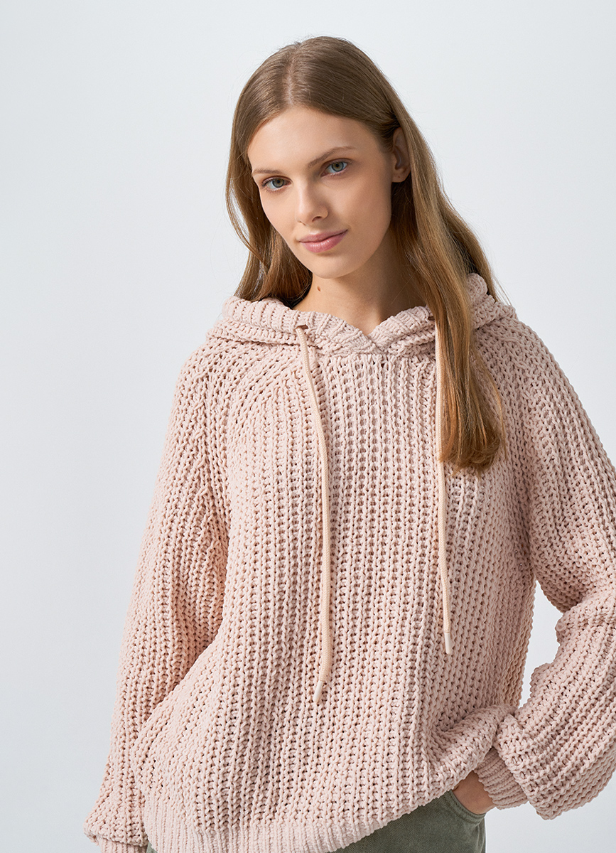 Джемпер укороченный с капюшоном бежевый 34367560299