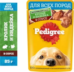 Влажный корм для собак Pedigree с кроликом и индейкой в соусе, 85 г