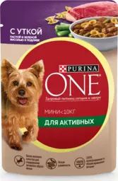 Влажный корм для собак Purina One с уткой, пастой и зеленой фасолью в подливе, 85 г