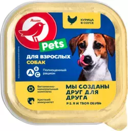 Корм консервированный для собак Ашан Красная птица с курицей в соусе, 300 г