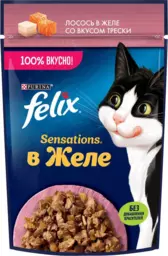 Корм влажный для кошек Felix лосось в желе со вкусом трески, 75 г