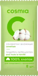 Салфетки влажные Cosmia семейные, 8 шт в ассортименте