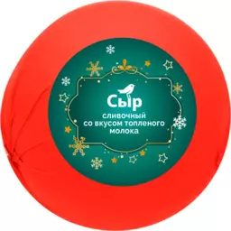 Сыр полутвердый сливочный со вкусом топленого молока Ашан Красная птица Бзмж 45%, 1 шар ~1 кг