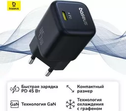 Сетевое зарядное устройство Baseus Picogo Gan Fast Charger 1C 45W Eu Cosmic Black