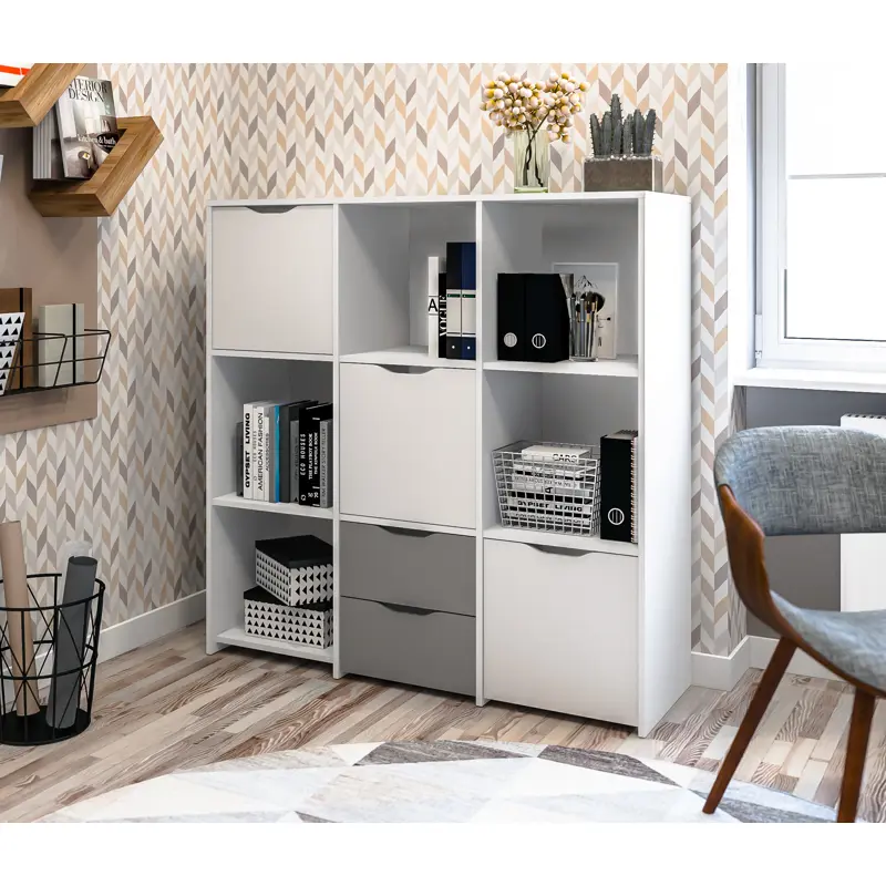 Стеллаж Столплит 127x128x40 см 2 выдвижных ящика 8 полок нагрузка до 5 кг Лдсп цвет белый, серый