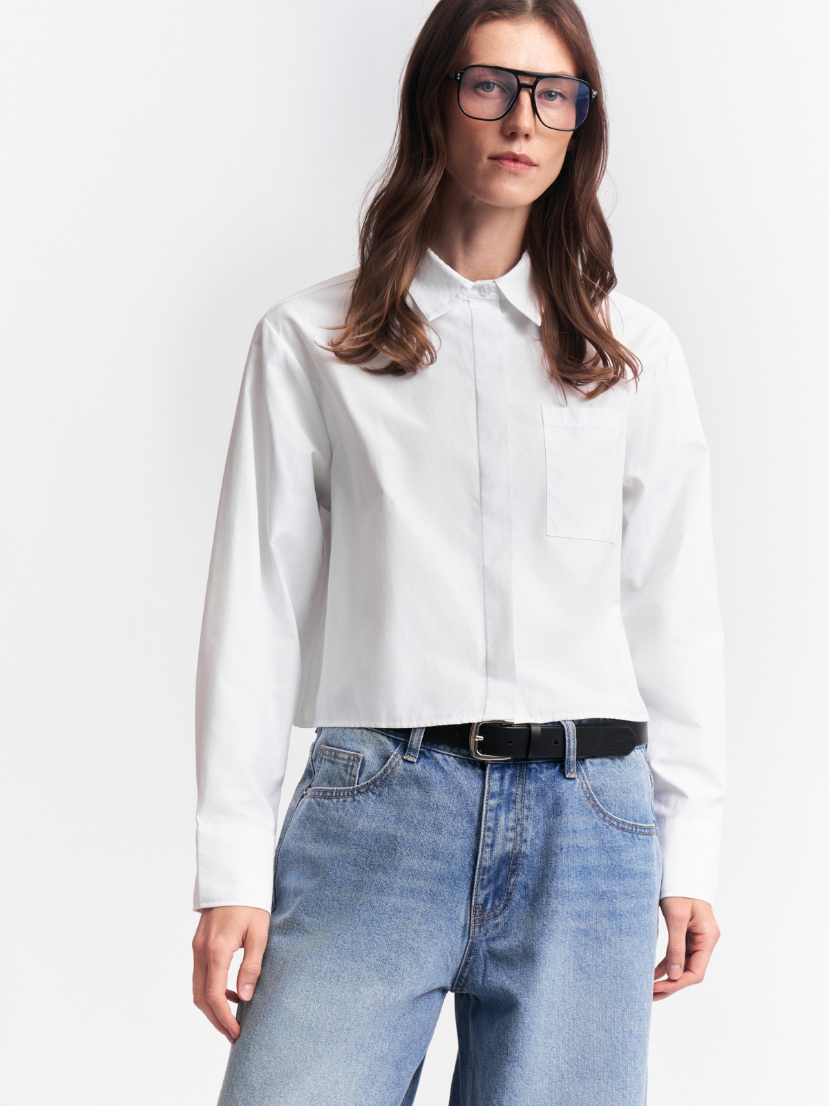 Укороченная рубашка прямого силуэта
