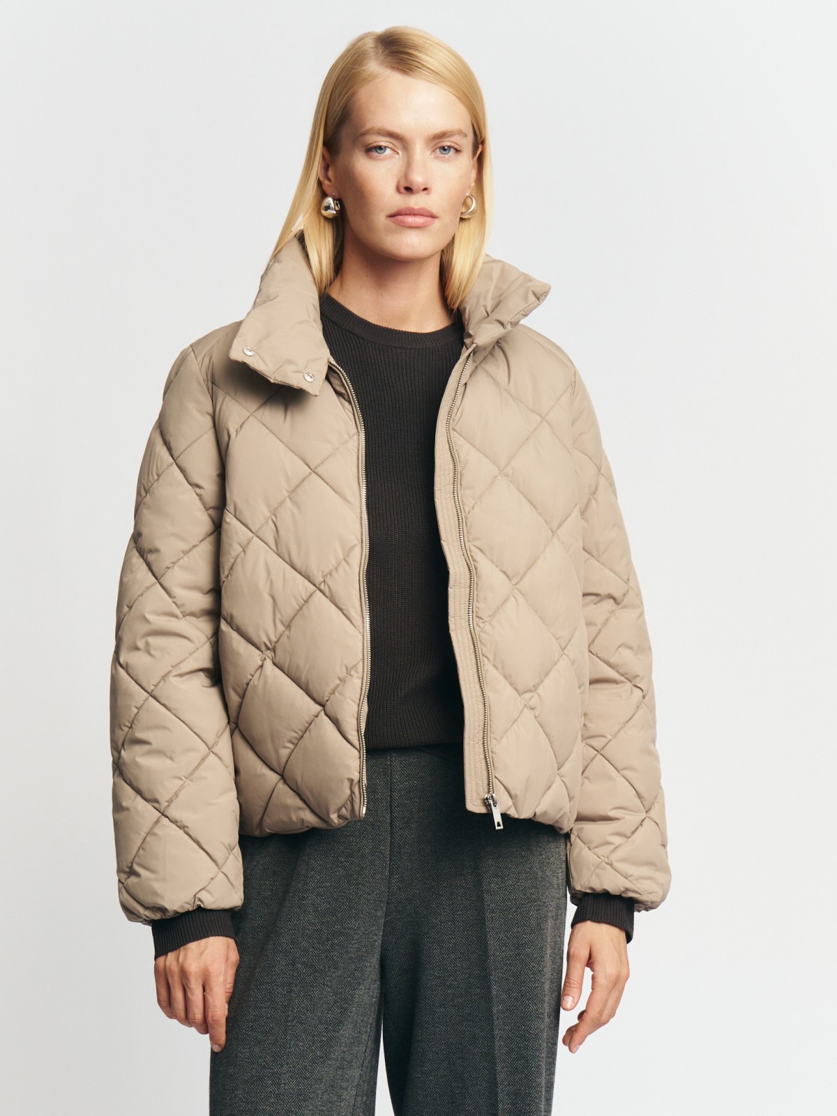 Тёплая короткая куртка на молнии с высоким воротником