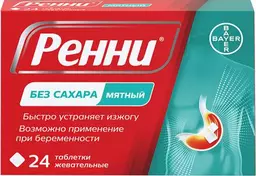 Ренни таблетки жевательные мята без сахара 24шт