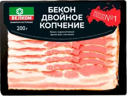 Бекон Велком Двойное копчение сырокопчёный нарезка, 200г
