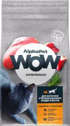 Сухой корм для стерилизованных кошек Alphapet Wow индейка и потрошки, 750 г