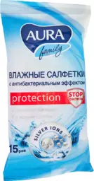 Влажные салфетки Aura c антибактериальным эффектом, 15 шт